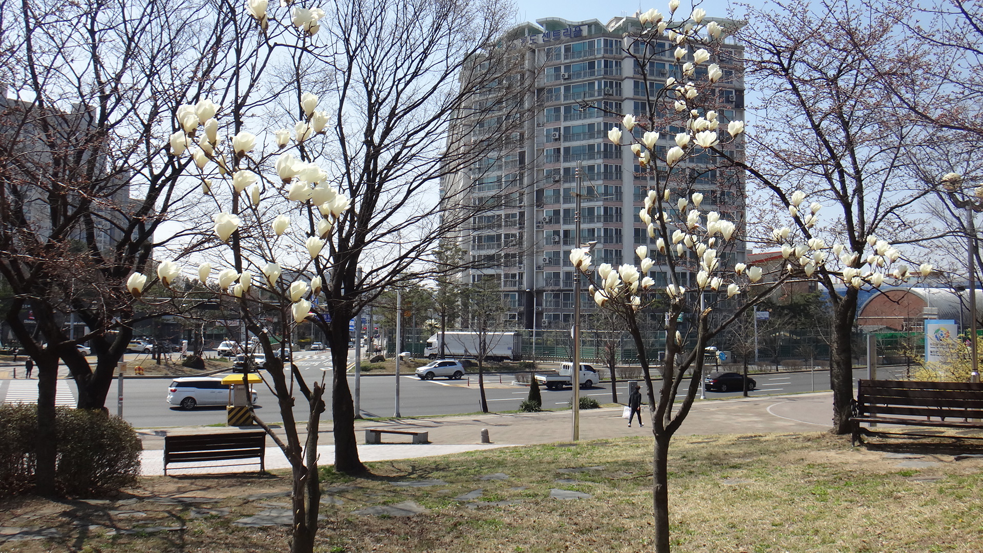 목련이 이쁘게 피어있다