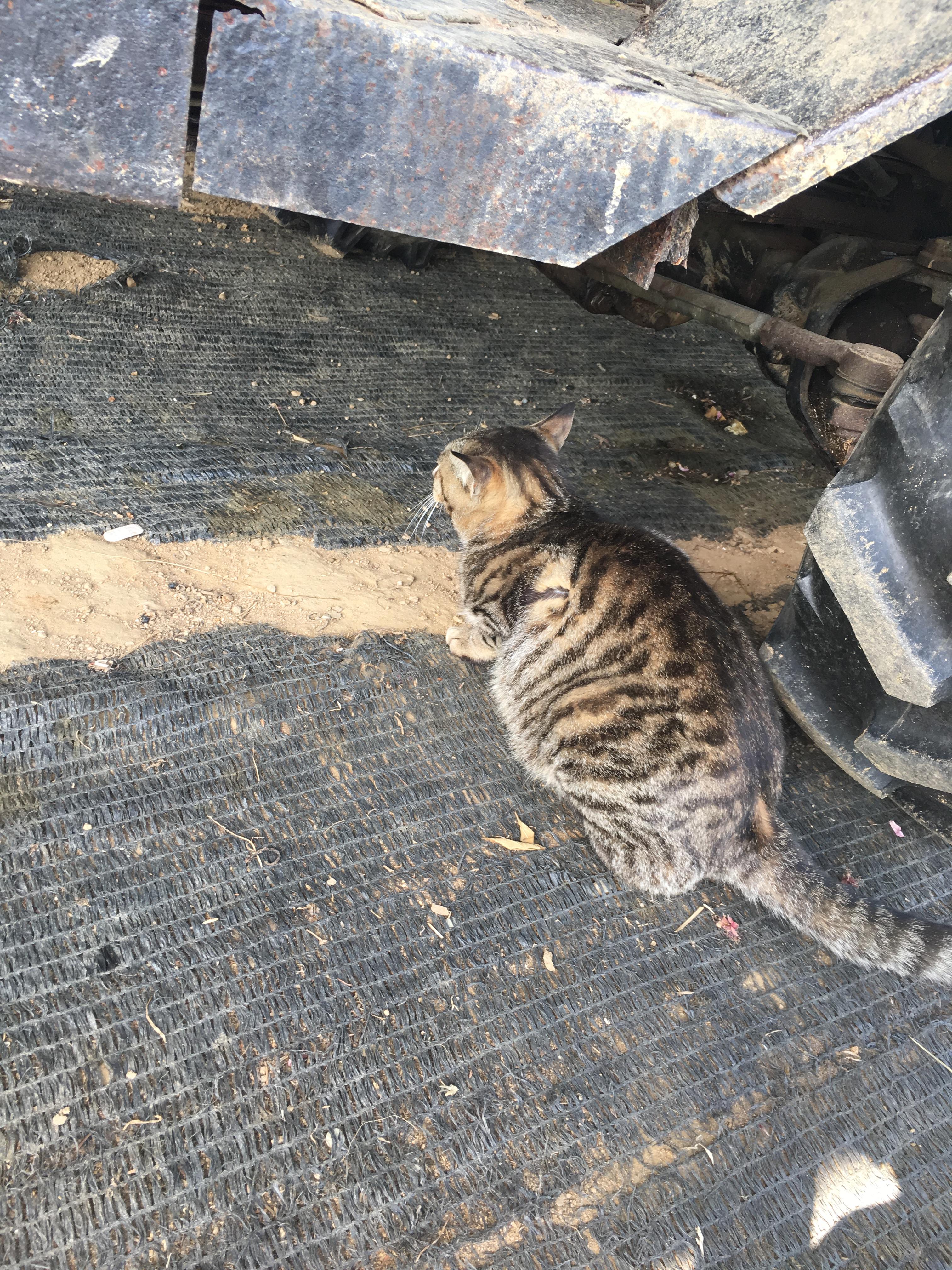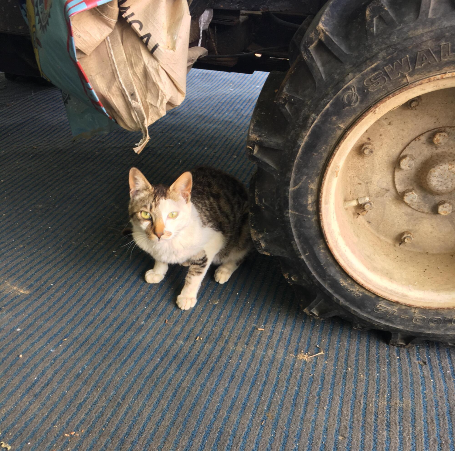 오늘은 차바퀴 뒤에 숨어 있습니다.