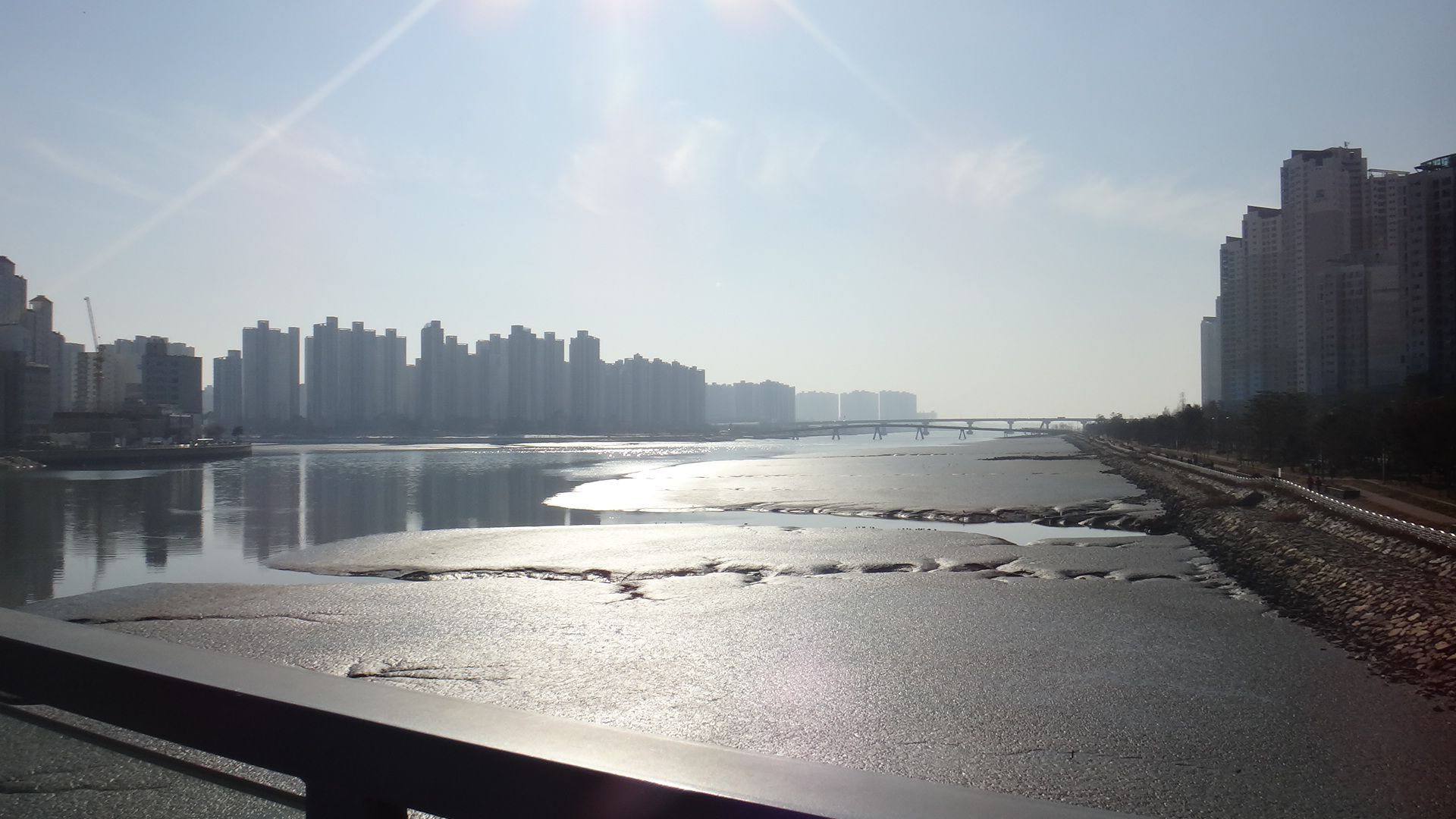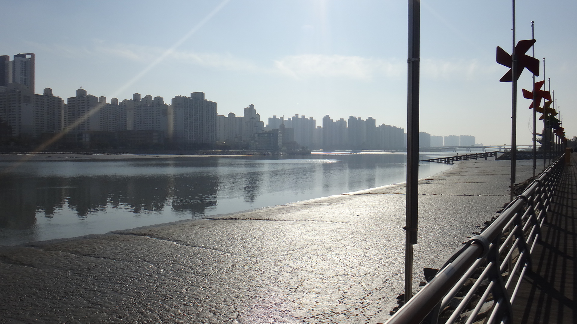 물이 많이 빠져서 잔잔한 호수 같은 느낌이었다...