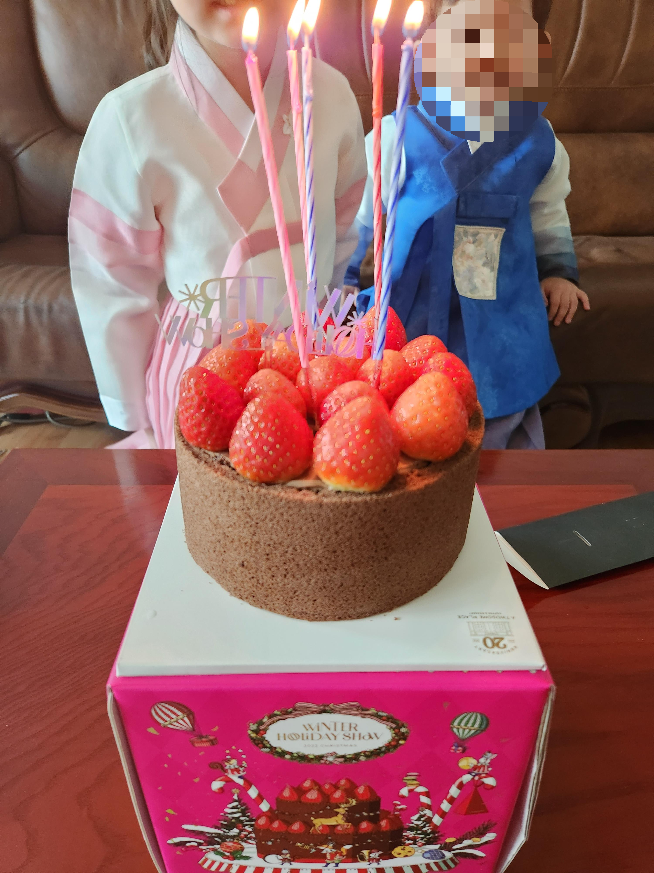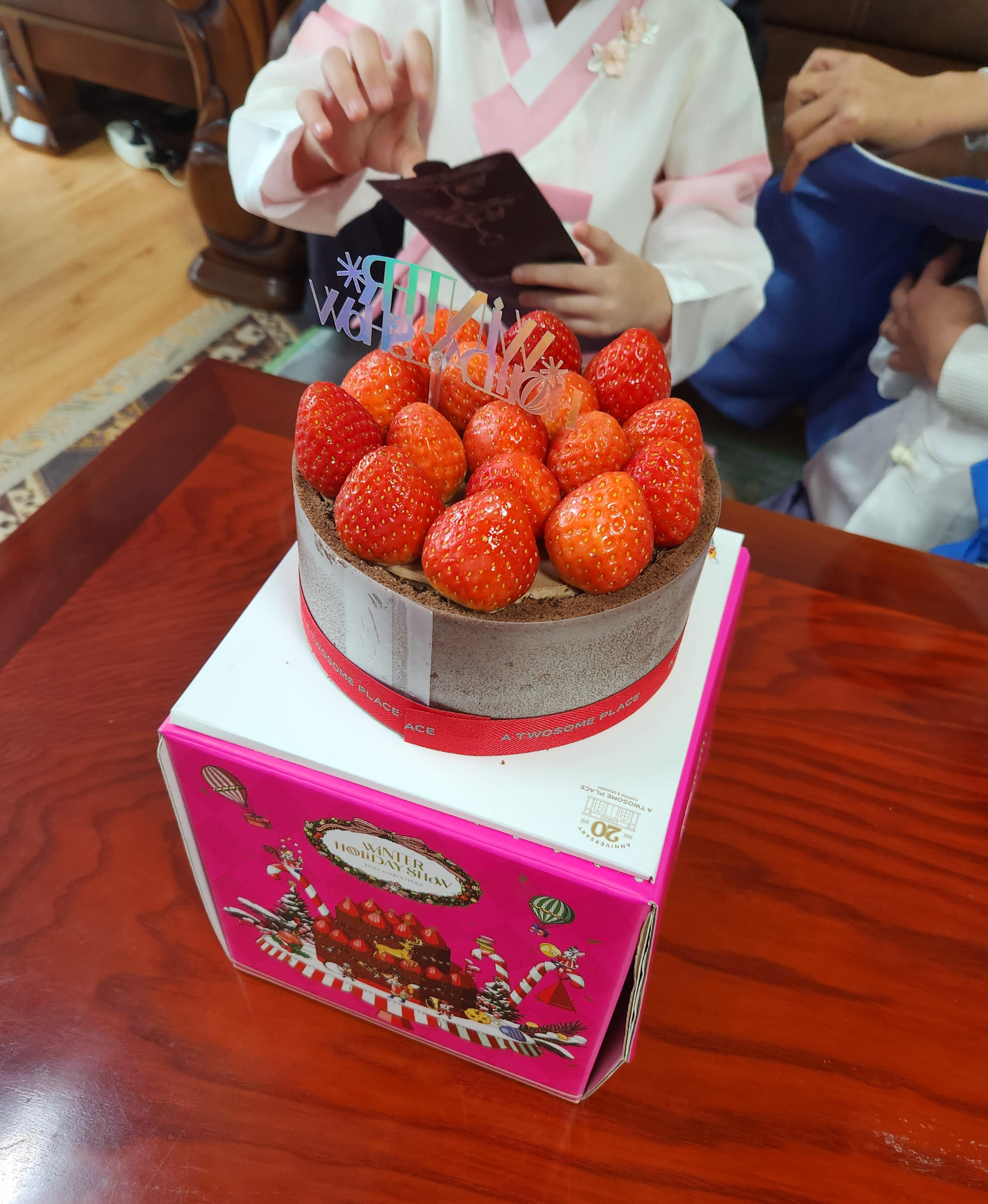 딸기가 윗면에 잔뜩 올라가져 있어요.