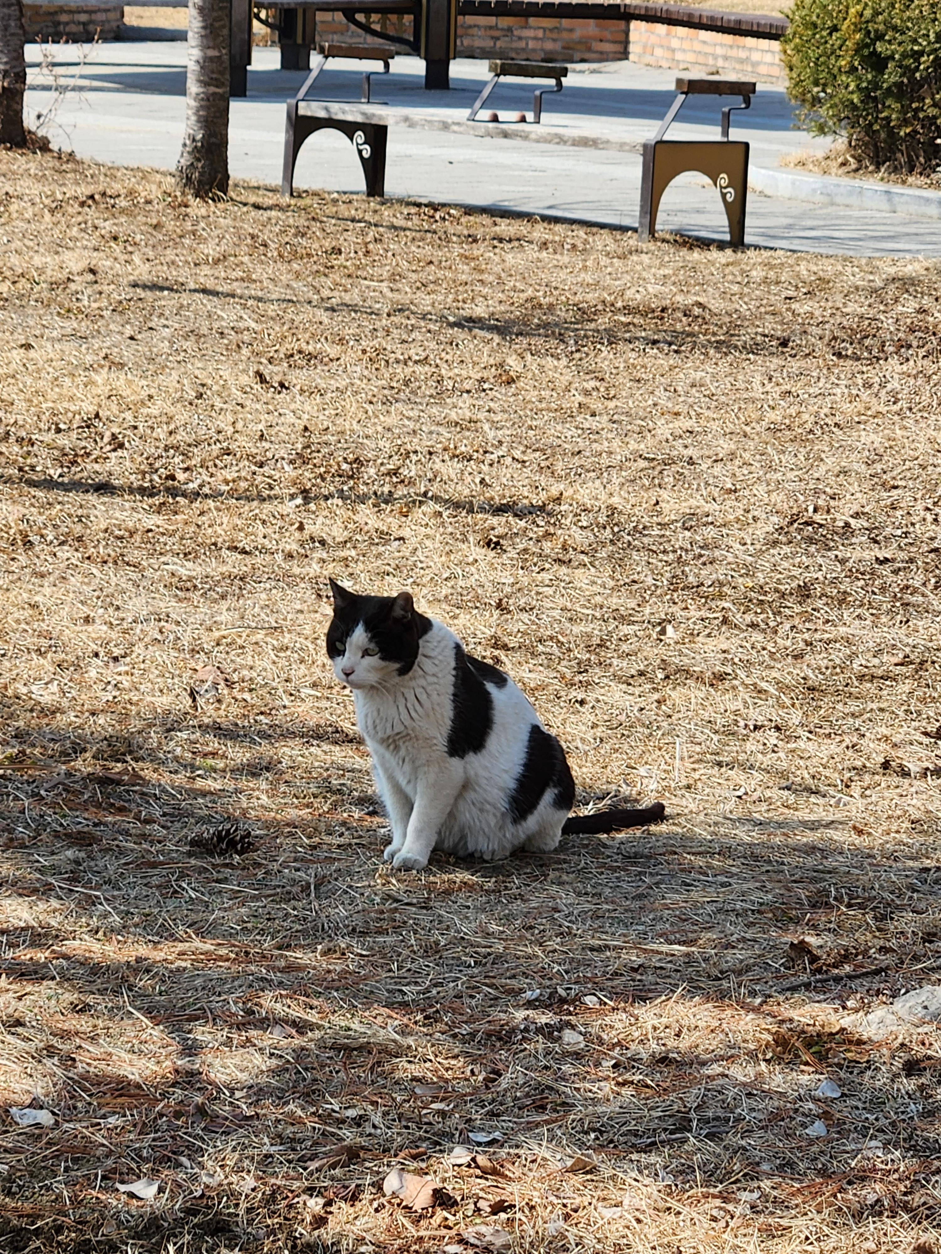 포동포동한 젖소냥이가 광합성을 즐기고 있다.