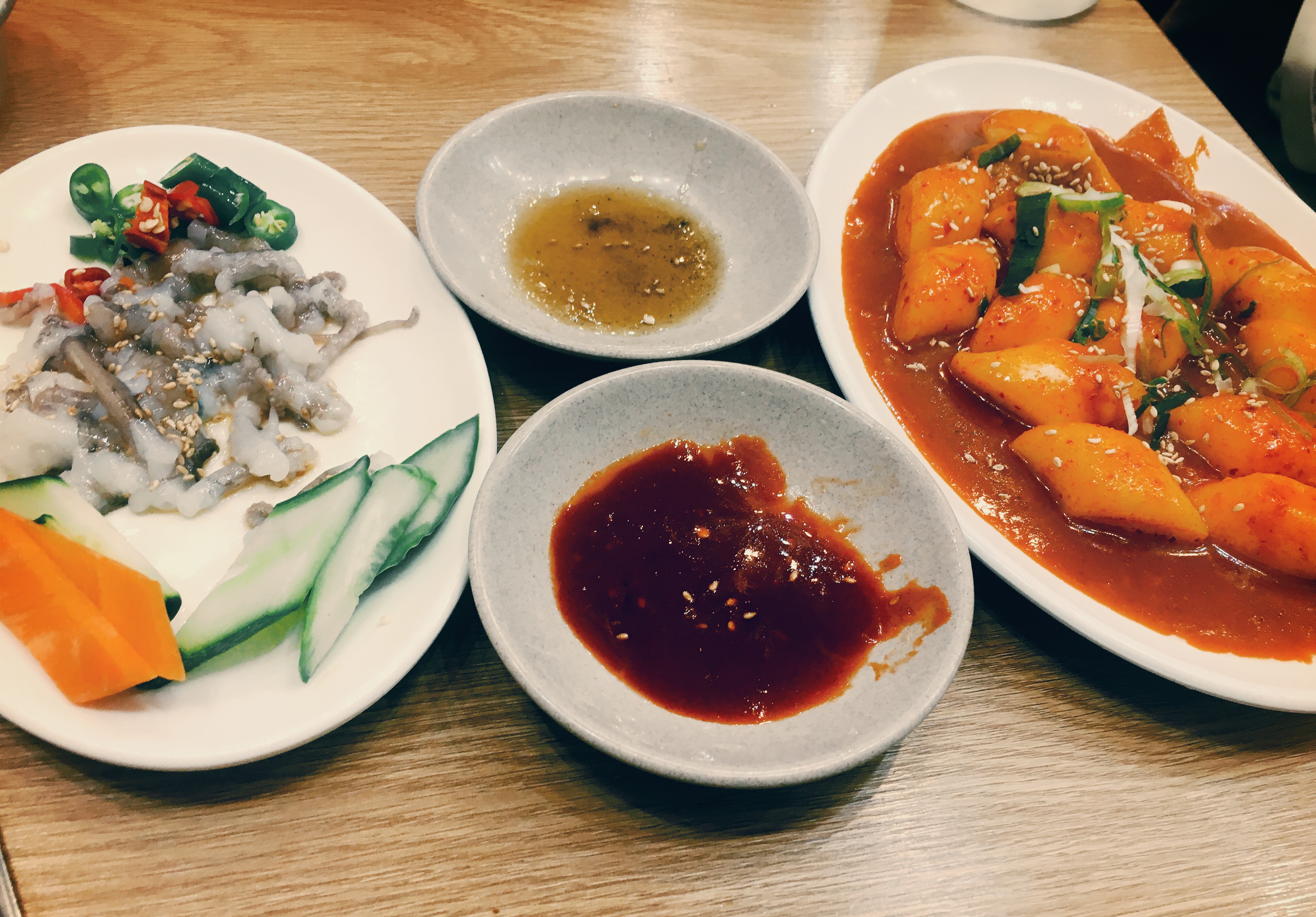 야채빈대떡과 산낙지, 떡볶이를 주문했어요.