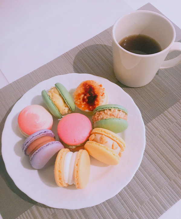 아래의 사진이 크렘브뤨레마카롱이에요.